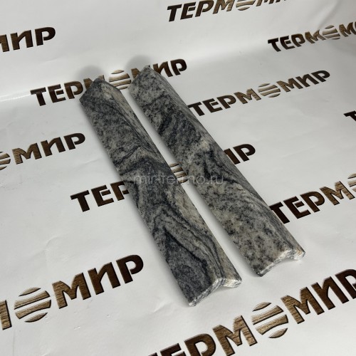 Уголок из гранита “Айс-Грей” — надёжный элемент отделки, который гармонично вписывается в интерьер бани или сауны. Камень подчёркивает естественную эстетику и придаёт отделке завершённый вид, а также защищает углы от износа.